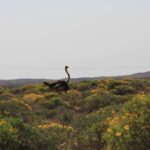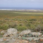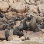 Bij het verlaten van het park rijden we langs een zeerobbenkolonie en een uitzichtpunt, dat zeker niet voor elk voertuig bereikbaar is. Ook bezoeken we een rotsenstelsel waar vroeger menselijke bewoning heeft plaatsgevonden. In de buurt is ook een soort lagune waar we enkele flamingo’s zien. Naast de bloemen verbazen we ons verder over het andere wild dat hier te zien is. Een heleboel springbokken, maar ook andere grote bokken. Omdat we een goede verrekijker hebben zien we grote- en kleine bokken, die we nog niet bij naam kennen.