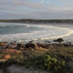 Wij hebben ervoor kozen een paar dagen te kamperen in het Namaqua nationaal Park, pal aan de Atlantische oceaan, op camping Koringkorrelbaai. Er zijn slechts vijf plekken op deze camping, reserveren is dus noodzakelijk. Elke plek heeft een kraal, in de vorm van een ronde muur, ter beschutting tegen de wind. De golven van de Atlantische oceaan breken hier met veel kabaal op de kust. Aan de andere kant strekt de baai, met een zandstrand, zich uit over een grote afstand.