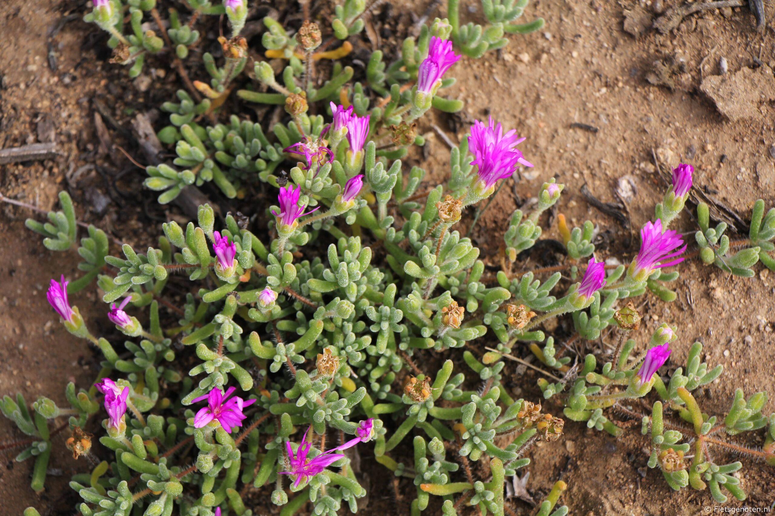 We hebben erg genoten van alle bloemetjes en veel soorten op de foto gezet. Natuurlijk hield de bloemenpracht niet op bij de grens van het park. Ook daarbuiten waren de berghellingen gekleurd in allerlei tinten. We rijden door zeer afgelegen gebieden en doen om de haverklap hekken van boerenerven open en passeren veeroosters. We hebben het gevoel onontdekt Afrika al binnen te zijn gegaan. We eindigen vandaag onze trip in Springbok, waar een camping, een supermarkt en een tankstation zijn, zodat we alle voorraden weer kunnen aanvullen.