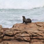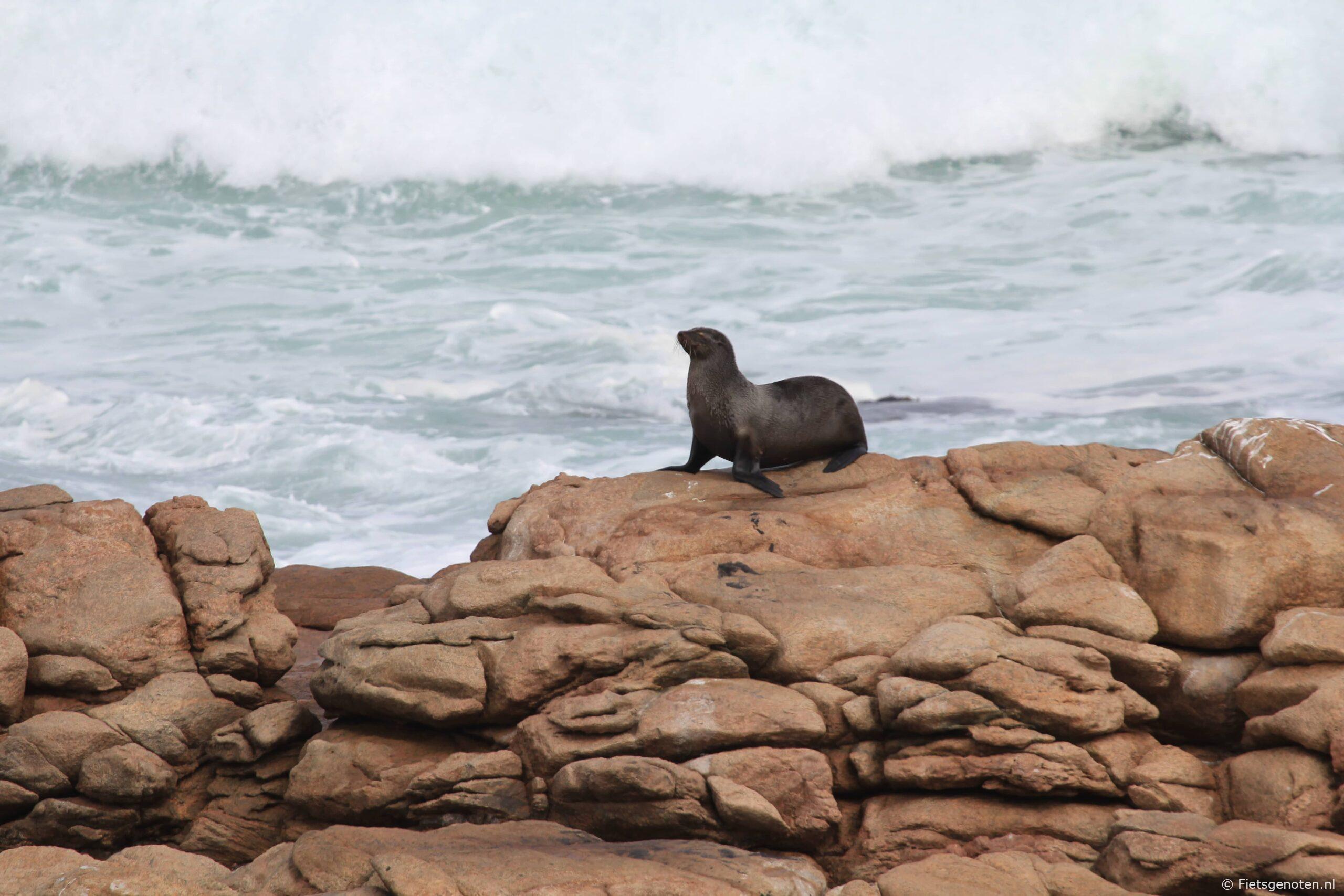 Bij het verlaten van het park rijden we langs een zeerobbenkolonie en een uitzichtpunt, dat zeker niet voor elk voertuig bereikbaar is. Ook bezoeken we een rotsenstelsel waar vroeger menselijke bewoning heeft plaatsgevonden. In de buurt is ook een soort lagune waar we enkele flamingo’s zien. Naast de bloemen verbazen we ons verder over het andere wild dat hier te zien is. Een heleboel springbokken, maar ook andere grote bokken. Omdat we een goede verrekijker hebben zien we grote- en kleine bokken, die we nog niet bij naam kennen.