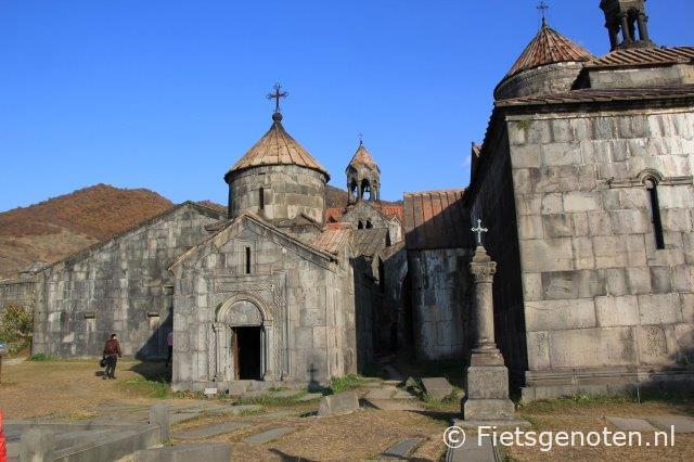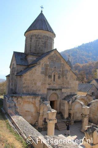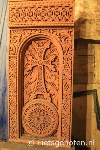 Na het bezoek aan de tempel vervolgen we onze weg naar het Geghard Klooster, gesticht door de eerder genoemde Gregorius de Verlichter. Het klooster is half in de rotsen gebouwd. In het klooster zijn veel oude Chatsjkars te vinden, sommige met nauwelijks zichtbare motieven, andere bijna alsof ze gisteren gemaakt zijn.