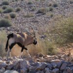 Tot zover de geografische statistieken. Hier komen jaarlijks veel toeristen, soms met eigen vervoer, zoals wij. Maar vaker nog in groepen, die worden vervoerd in comfortabele ‘vrachtwagens’ waarmee ze volgens in een strak schema door Namibië worden geleid. Soms kijken en ruiken we, met enige jalousie, naar de resultaten van het werk van de vaste kok van zo’n groep. Maar meestal zijn we blij als ze wat verderop op de camping staan.