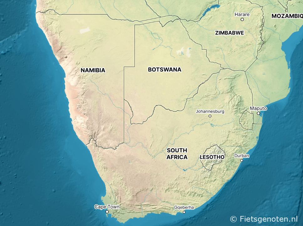 Wij gaan twee maanden Zuidelijk Afrika verkennen. Eerst vliegen we naar Kaapstad en daar huren we een auto. Dat is een Suzuki Jimny, een soort terreinauto met daarop een daktent om in te slapen. Langs de westkant van Zuid-Afrika rijden we naar het noorden, naar Namibië. In Namibië zullen we een aantal natuurparken bezoeken waaronder Fish River Canyon, Sossus vlie en Ethosha. Dan gaan we door naar Botswana. Wat de plannen precies zijn weten we nu nog niet precies. In de loop van de reis zijn we op die manier flexibel om nog zaken aan te passen. Zeker is in ieder geval wel dat we ook in Botswana een aantal natuurparken aan zullen doen, zoals de Okanvango delta en Chobe NP. We maken een ronde waarbij we terugkeren in Kaapstad, waar we de auto weer inleveren.